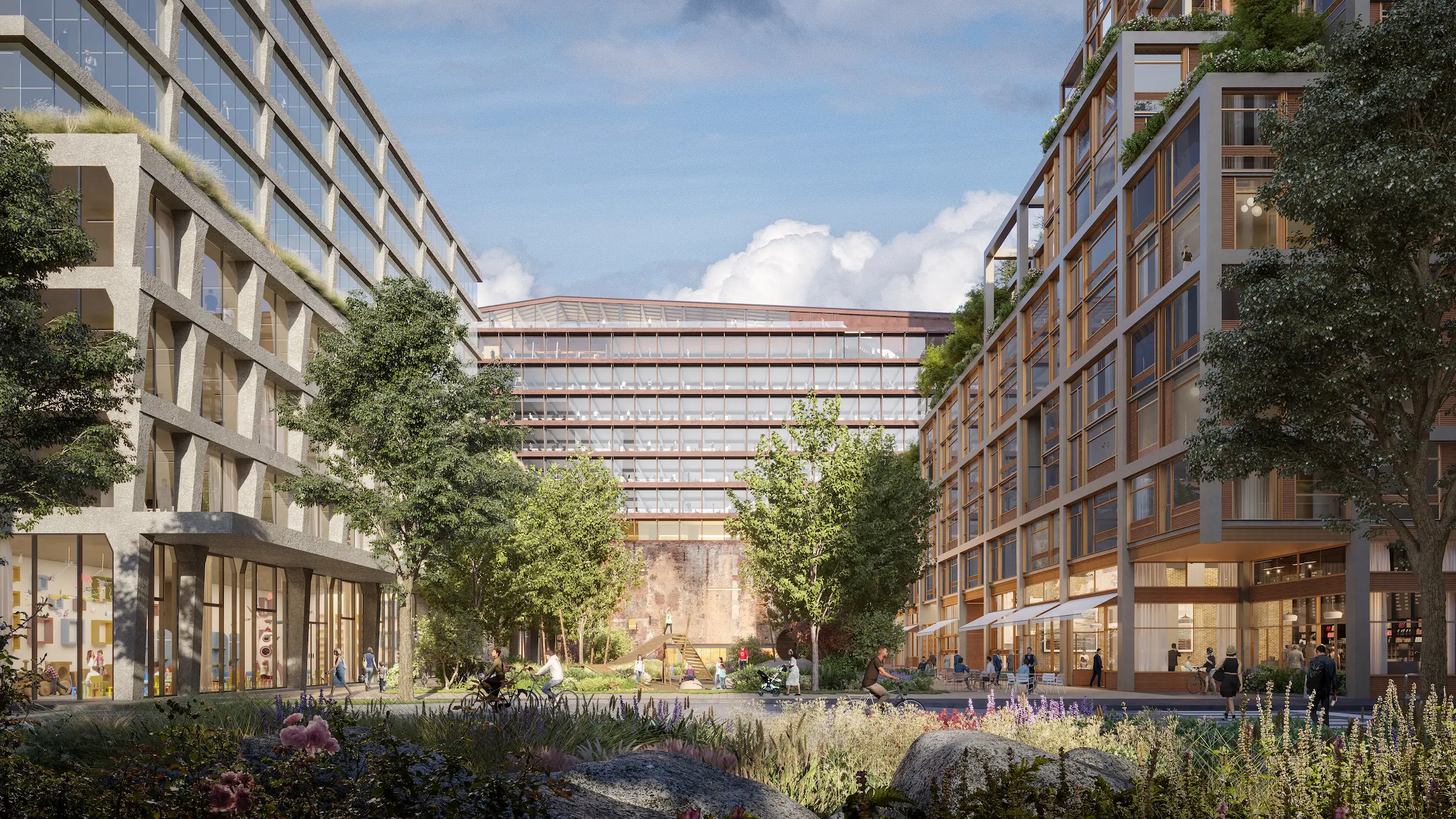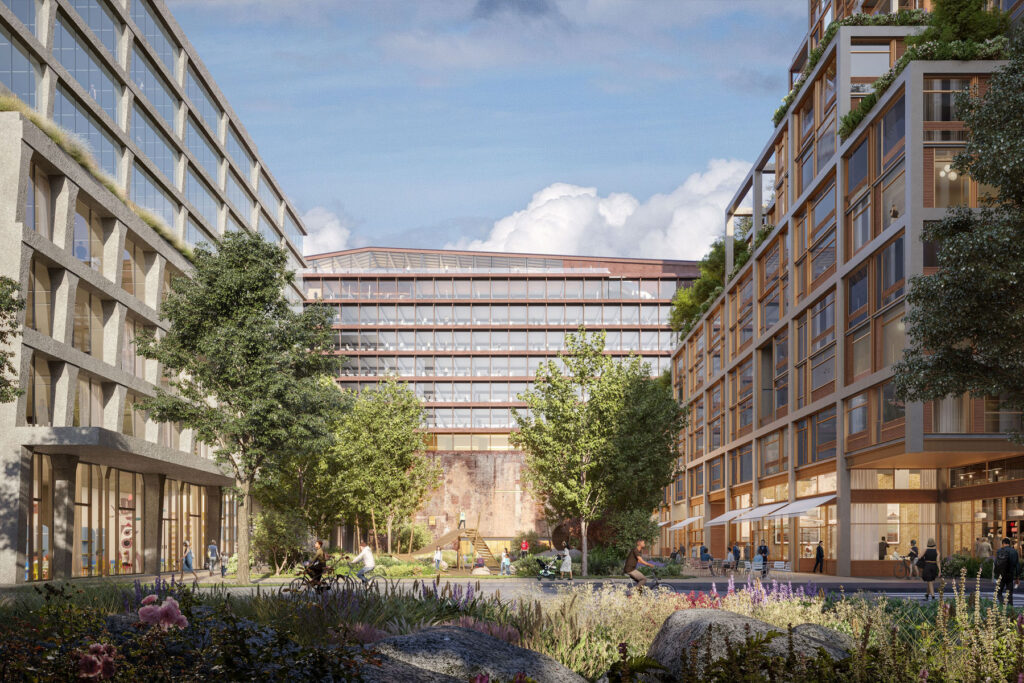 As the neighborhood’s central spine and primary green space, Power Station Park connects people to the waterfront, shops, and the life of the district. Nestled between the buildings, the park weaves together dining, childcare, cultural venues, and local retail into the neighborhood’s natural gathering place.