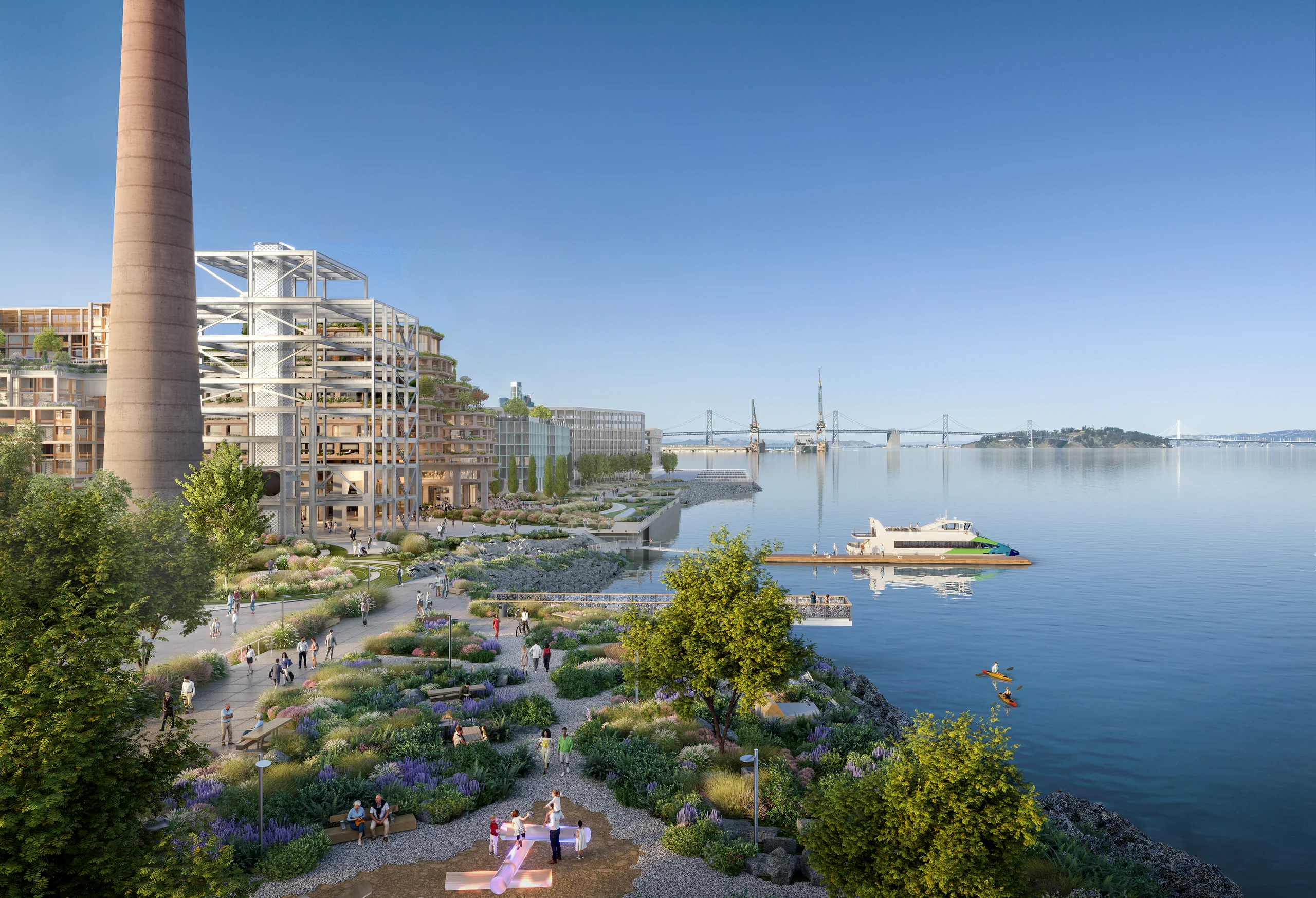 Designed with Heatherwick Studio and set along the historic Power Station shoreline, Prequel Park transforms 2.5 acres into a new public waterfront where industrial history meets green space. Here, the city will meet the bay again.